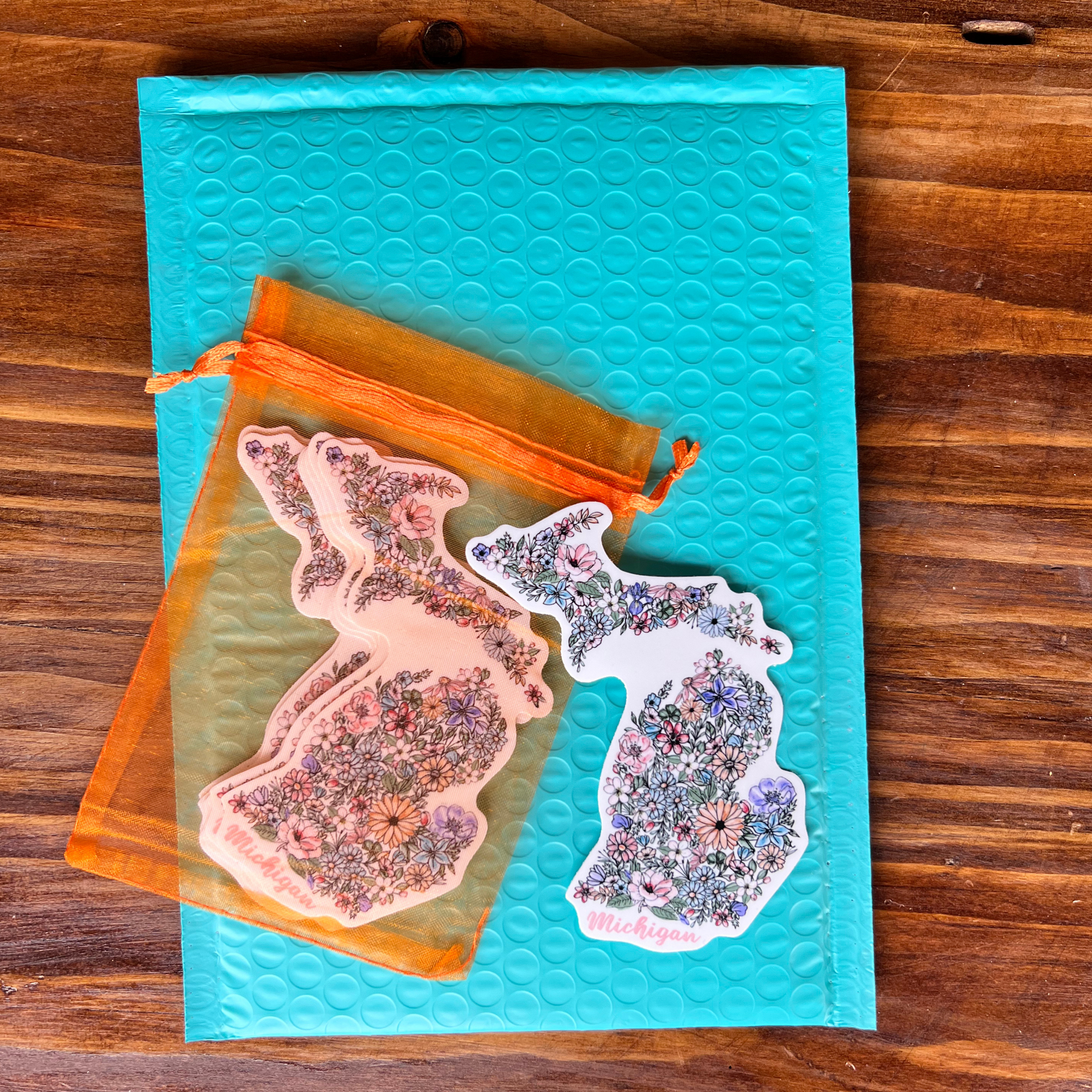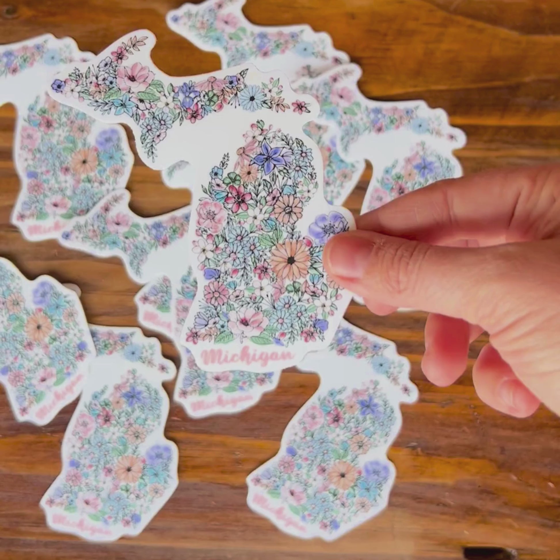 Michigan Floral Sticker – Celebrate your love for Michigan with this beautifully designed waterproof sticker! Featuring a delicate watercolor illustration of the state of Michigan, this sticker is adorned with the apple blossom, Michigan’s official state flower. The soft floral hues and artistic details make it perfect for adding a touch of nature-inspired charm to your water bottle, laptop, notebook, or car.