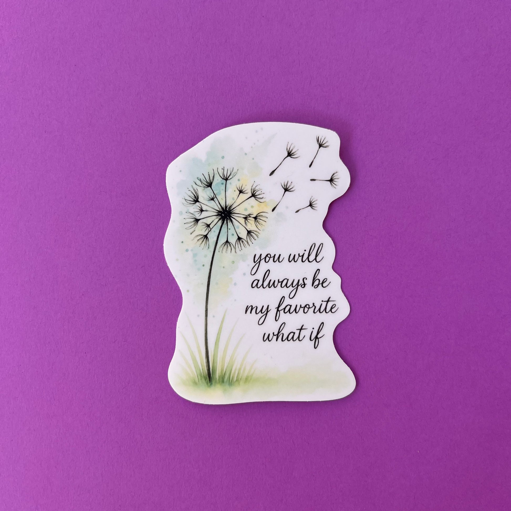 Part of the Always in My Heart Collection, this sticker carries a tender message for grieving parents and loved ones: “You will always be my favorite what if.” The design features a soft watercolor background with a dandelion releasing seeds into the wind, a symbol of love, longing, and the dreams that could have been.